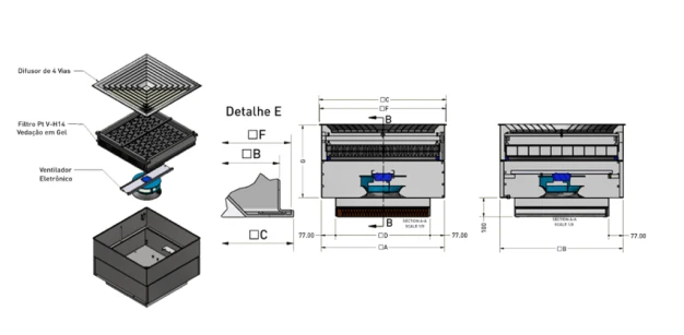 A Caixa de Filtragem para Retorno SpeedAir modelo CXTB-GR com Grelha Especial, foi projetada para leitura individual de pressão do elemento filtrante e para execução de teste de integridade e estanqueidade. Com um espiral de aço galvanizado posicionado na entrada de ar é possível fazer a inserção de P.A.O pelo ponto pneumático na própria grelha do equipamento e é o mesmo e distribuído de maneira uniforme em toda a área do elemento filtrante, garantindo assim uma leitura precisa e dentro dos padrões da EN 1822.