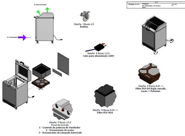 A Unidade de Descontaminação SpeedAir, modelo SPA-V-1200 é um equipamento portátil e durável, fabricado em chapa galvanizada com pintura de epóxi, projetado para descontaminar ambientes contra vírus e bactérias. Possui um sistema de filtragem composto por pré-filtro G4/CA e filtro HEPA H14, que capturam eficientemente partículas microscópicas, garantindo a remoção de 99,995% dos microrganismos causadores de doenças.